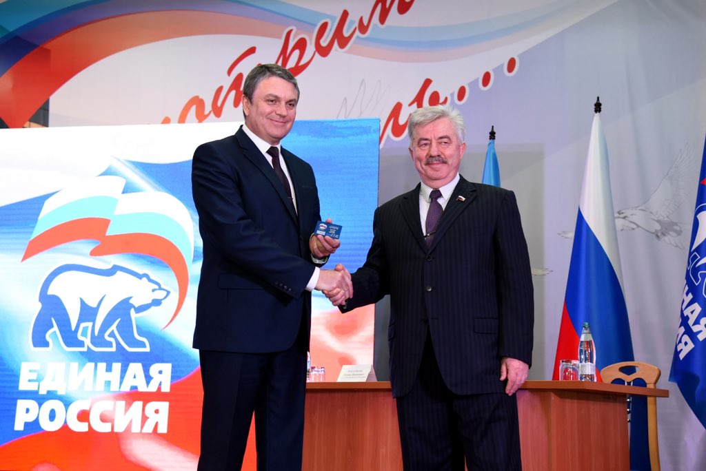 Глава группировки «ЛНР» Леонид Пасечник стал членом российской партии “Единая России”. Для вручения ему партбилета в Луганск приехал депутат Госдумы…
