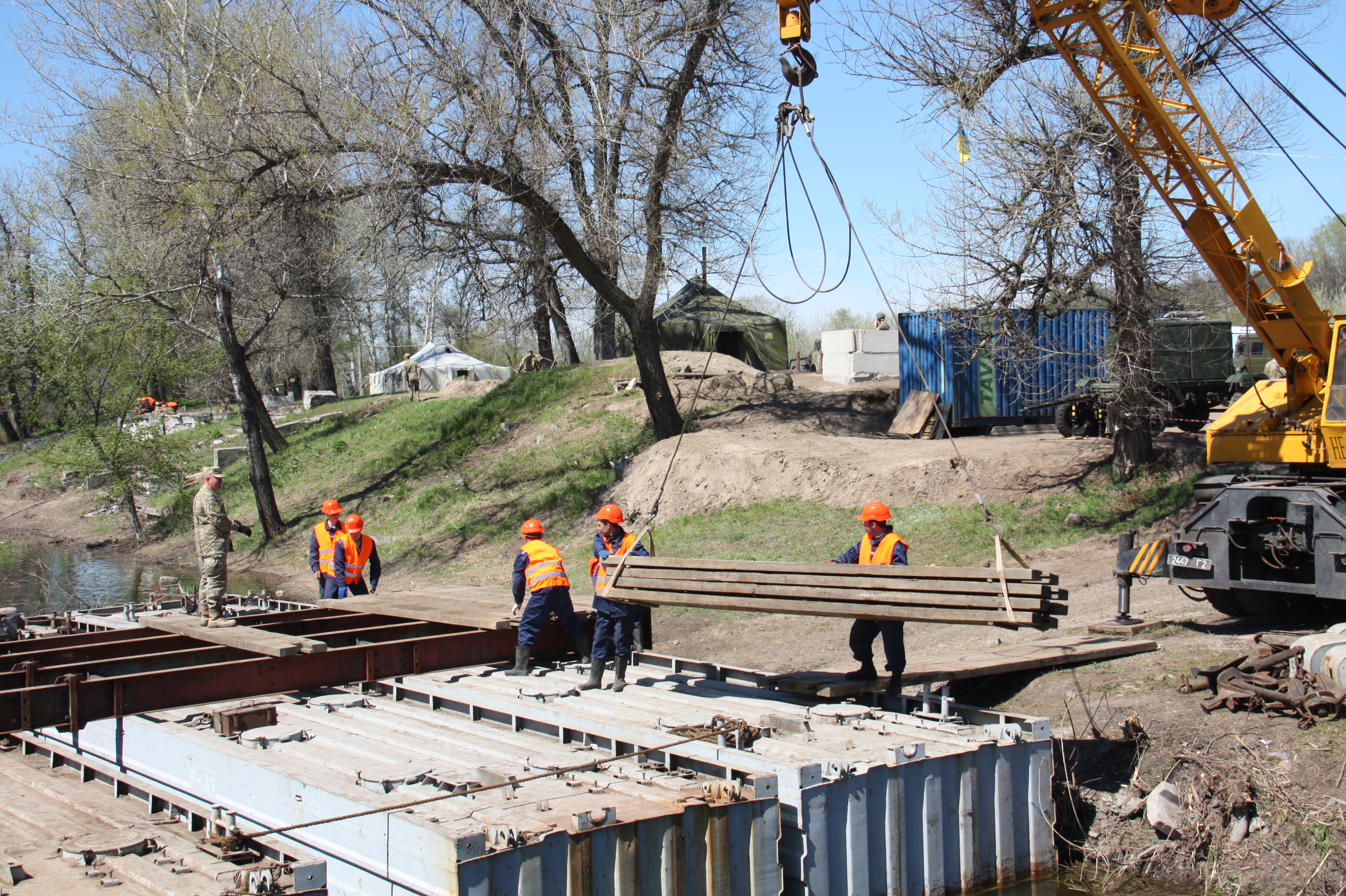 Проект, по которому должен был осуществляться ремонт, не предусматривал временной переправы. Для местных жителей это могло бы обернуться серьезными трудностями: следующий мост находится на расстоянии 10 километров. Но военные самостоятельно установили понтонную переправу.