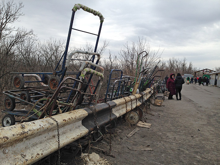 На КПВВ придумали новый вид “бизнеса”: арендовать тележку и толкать ее самостоятельно
