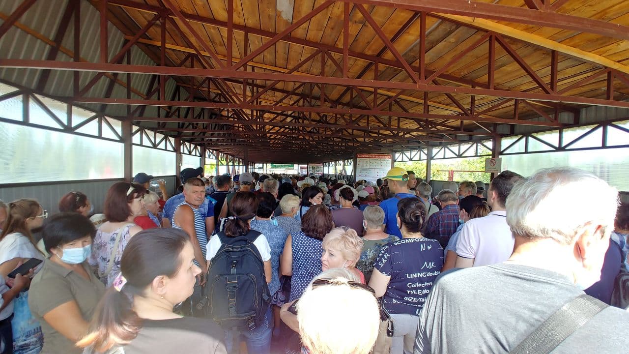 На пункте пропуска группировки “ЛНР” 4 августа собралась толпа из желающих пройти пункт пропуска без необходимости сдавать тест на антиген…
