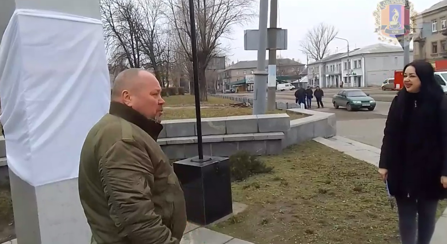 В окупованому Лисичанську на фоні розбитих будинків встановили бюст Ворошилова. Його вже намагалися прибрати