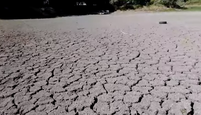 На видео оператор сначала снимает полностью высохшее озеро с берега и рассказывает, что раньше здесь был обрыв, под которым начиналась вода. Сейчас берега бывшего озера заросли травой, а дно полностью высохло. Оператор прошлась по бывшему дну – там только растрескавшаяся земля. Вода полностью ушла из озера.
